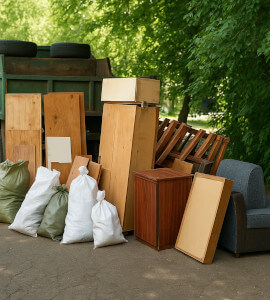 Строительный и бытовой мусор (после ремонта в квартире, даче и т.д.), древесные и металлические отходы, грунт, земля.
